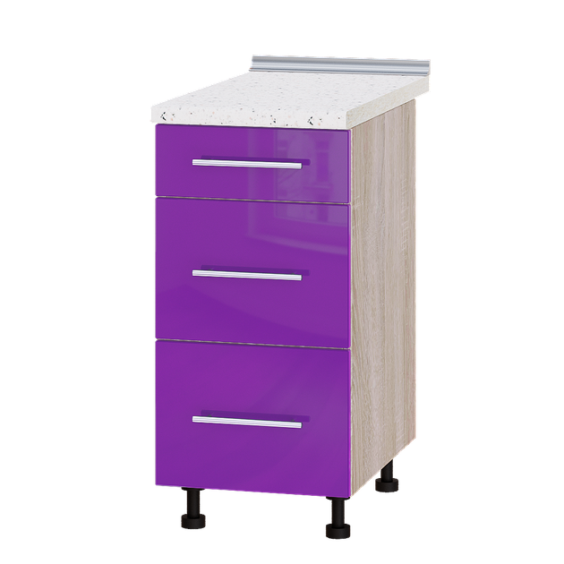 Кухонний модуль Модерн Ніз Н87-400 Три ящики Еверест Бузок Глянець, Сонома