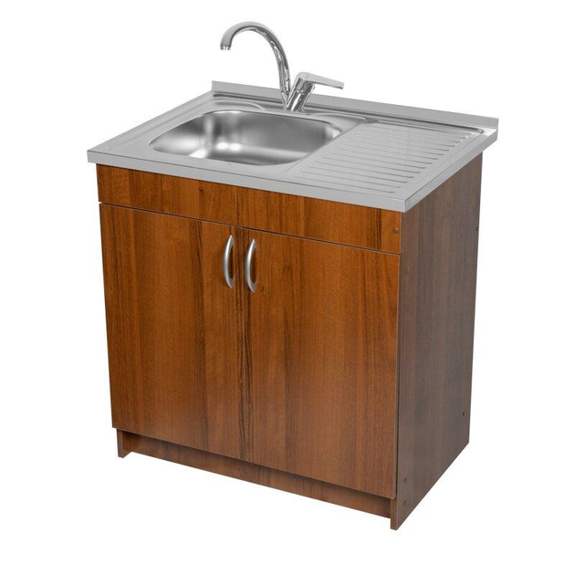 Тумба кухонна Горіх Лісовий 80 з накладною мийкою 80х60 права в комплекті змішувач і сифон