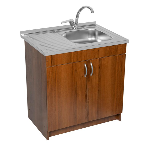 Тумба кухонна Горіх Лісовий 80 з накладною мийкою 80х60 ліва в комплекті змішувач і сифон