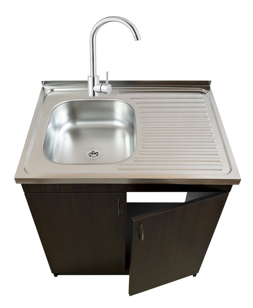 Тумба для кухні Венге 80 з мийкою 80х60 ліва в комплекті змішувач і сифон
