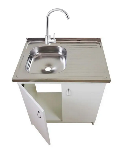 Тумба для кухні Біла з мийкою 80х60 (0,6мм) ліва чаша, змішувач нержавіючий, сифон