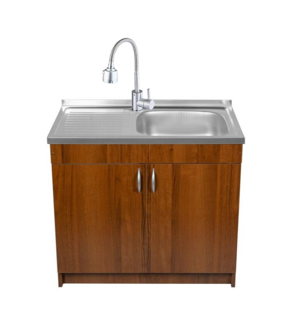 Тумба для кухні Горіх з мийкою 80х50 (0,6мм) права чаша, рефлекторний змішувач, сифон