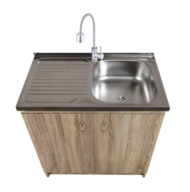 Тумба для кухні Дуб сонома з мийкою 80х50 (0,6мм) права чаша, рефлекторний змішувач, сифон