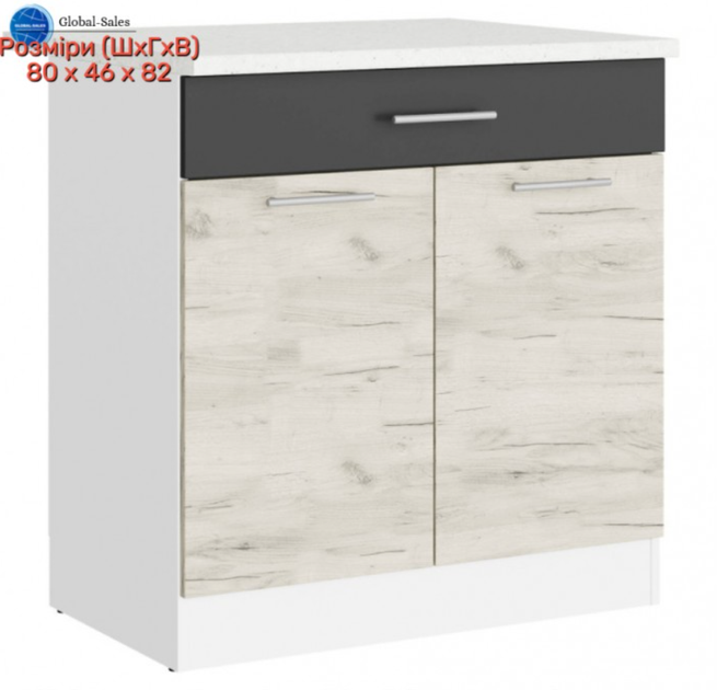 Кухонні модулі Еко Ніз шухляда 800 зі стільницею Скай, Білий, Дуб крафт білий, Графіт