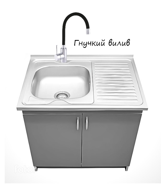 Тумба з мийкою 80х50 (0,8 мм) права Трюфель для кухні в комплеткі змішувач і сифон