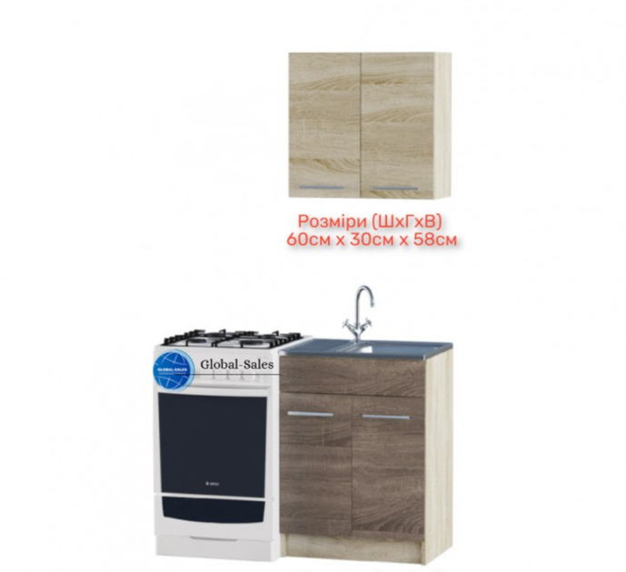 Кухонний модуль Еко набір 0.6 м, з накладною мийкою, Дуб Сонома, Дуб Сонома Трюфель