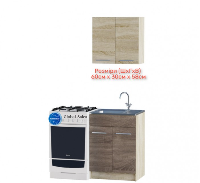 Кухонні модулі Еко набір 0.6 м, з накладною мийкою-L, Дуб Сонома, Дуб Сонома Трюфель
