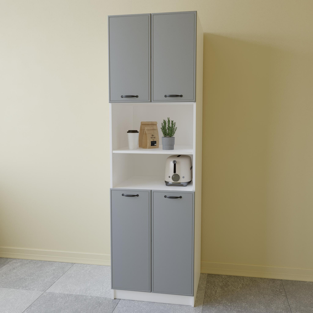Пенал-буфет кухонна шафа 568х2004х588 мм МДФ для кухні мікрохвильовки духовки (К-75) Білий/Сірий