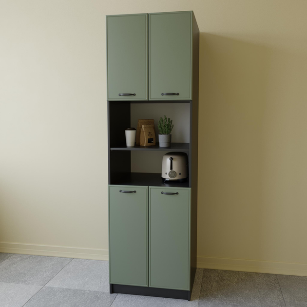 Пенал-буфет кухонна шафа 568х2004х588 мм МДФ для кухні мікрохвильовки духовки (К-75) Чорний/Зелений