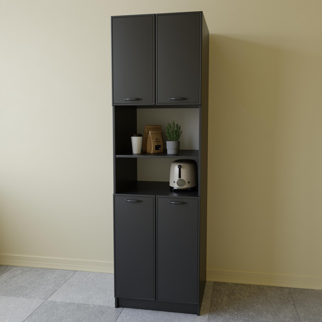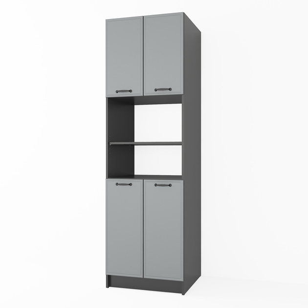 Пенал-буфет кухонна шафа 568х2004х588 мм МДФ для кухні мікрохвильовки духовки (К-75) Чорний/Сірий