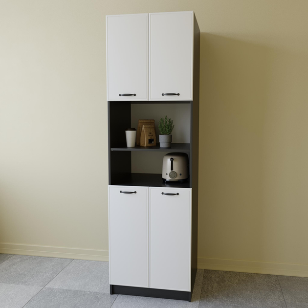 Пенал-буфет кухонна шафа 568х2004х588 мм МДФ для кухні мікрохвильовки духовки (К-75) Чорний/Білий