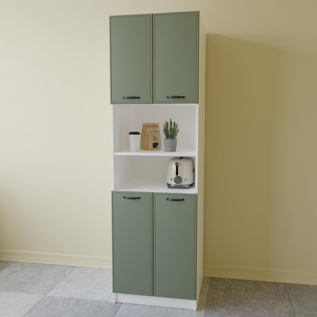 Пенал-буфет кухонна шафа 568х2004х588 мм МДФ для кухні мікрохвильовки духовки (К-75) Білий/Зелений