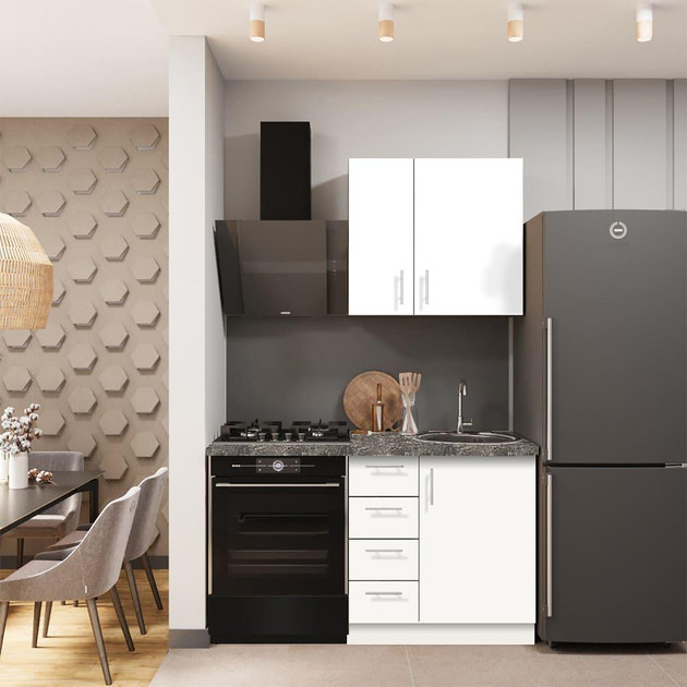 Кухня ДСП 2 Класік SENAM 0,8 м окремі плита тв витяжка, з ручками Білий гладкий / Графіт (ДСП2Р08.6)
