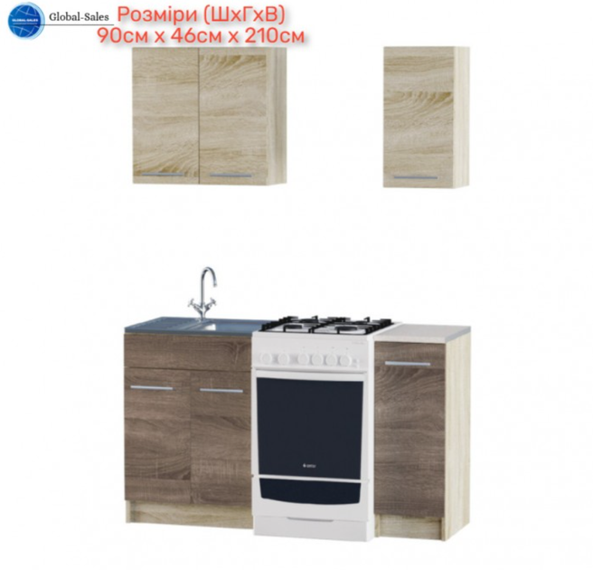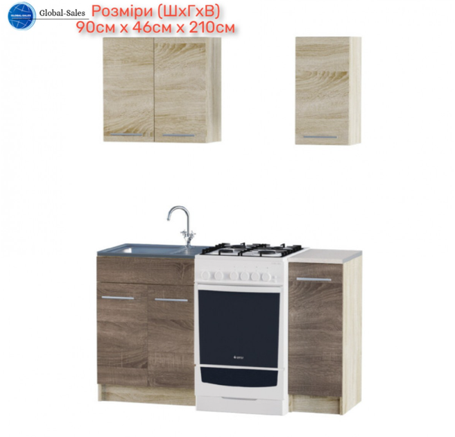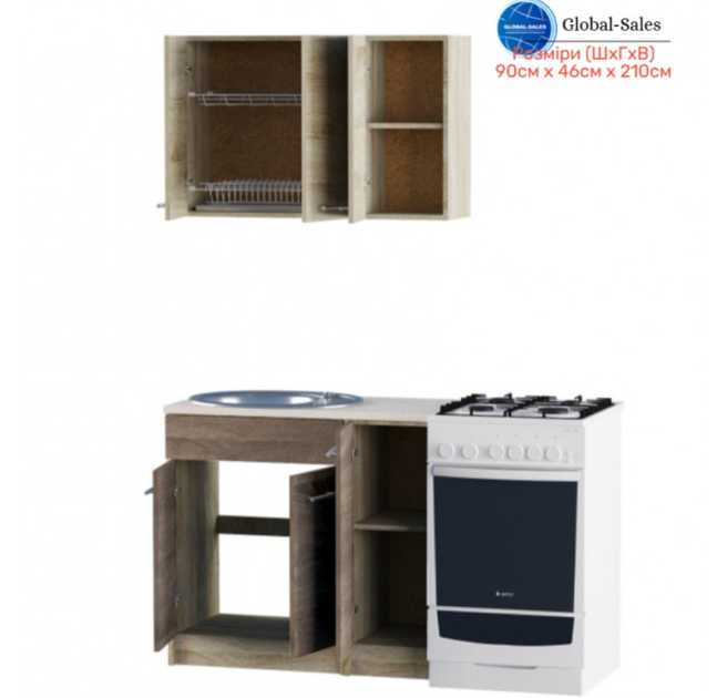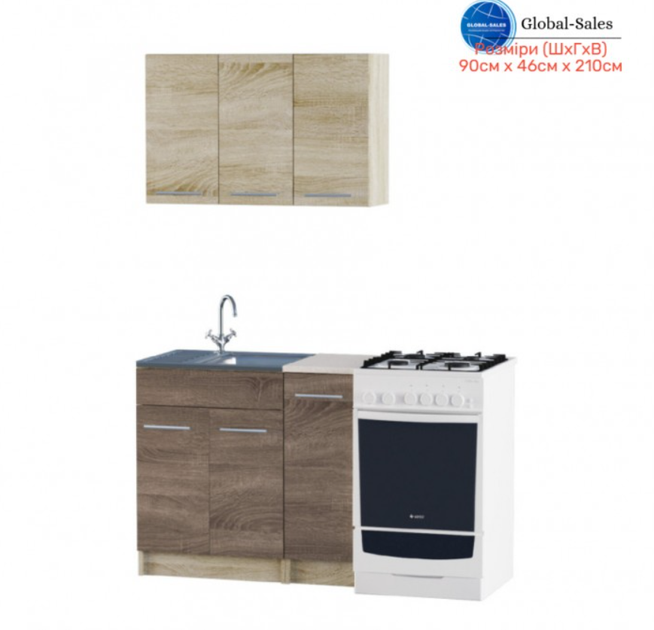 Кухня набор №1, 0.9 м, з накладною мийкою-R, Дуб Сонома, Дуб сонома Трюфель