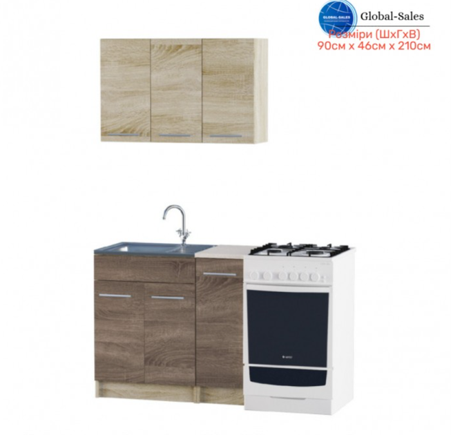 Кухня Еко набір №2, 0.9 м, з накладною мийкою, Дуб Сонома, Дуб сонома Трюфель