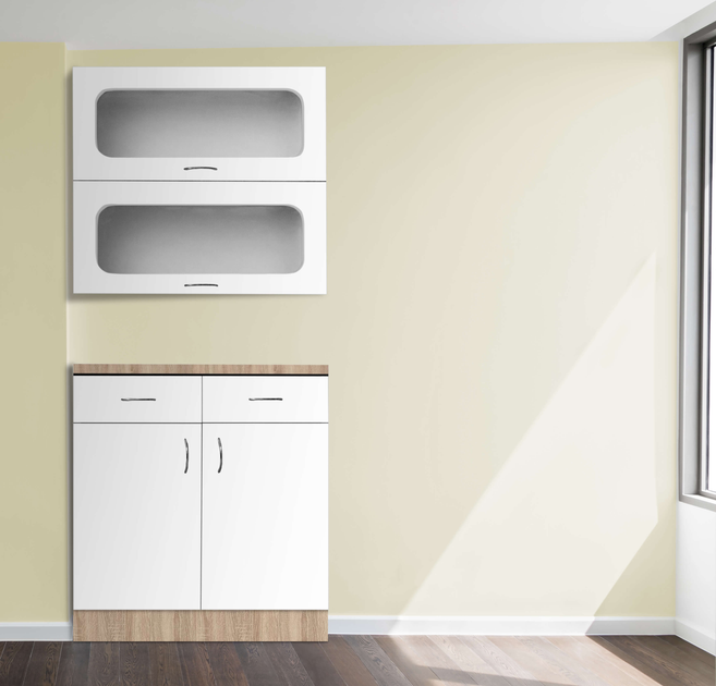 Тумба дводверна з 2-ма ящиками зі стільницею 1-ї категорії (складська програма) ЛЮКС ширина 900 МАКСІ-МЕБЛІ Дуб сонома/Білий