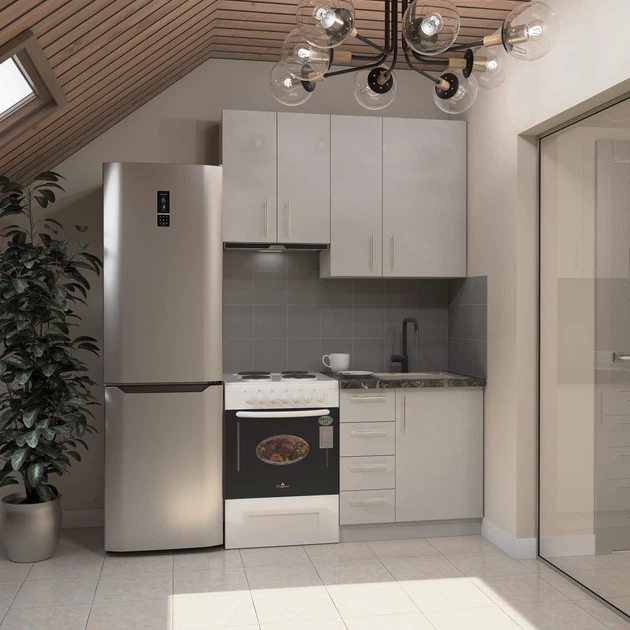 Кухня ДСП 3 Класік SENAM 1,4 м висота Н 900 плита окремо, з ручками Сірий камінь (ДСП3Р14.4)