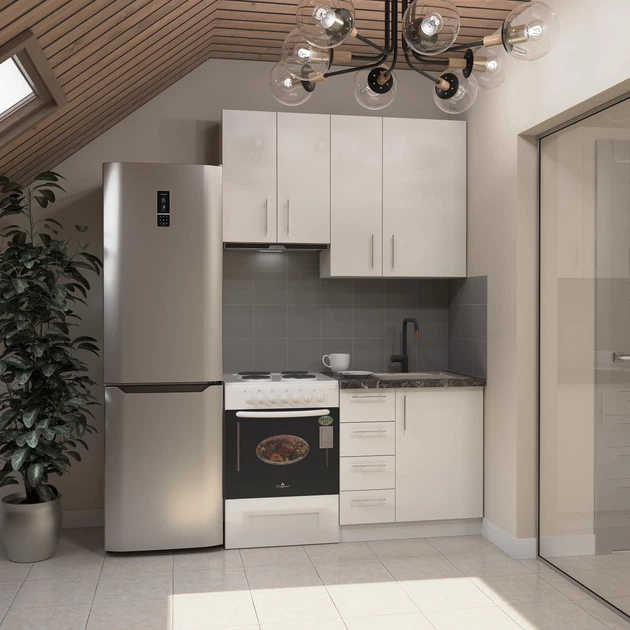 Кухня ДСП 3 Класік SENAM 1,4 м висота Н 900 плита окремо, з ручками Білий гладкий (ДСП3Р14.1)