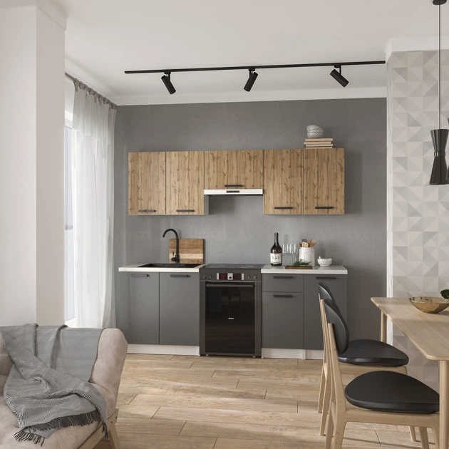 Кухонний набір Оптима К-2 Еверест 2 м, зі стільницею, без миття, Дуб Крафт Золотий, Антрацит, Антрацит
