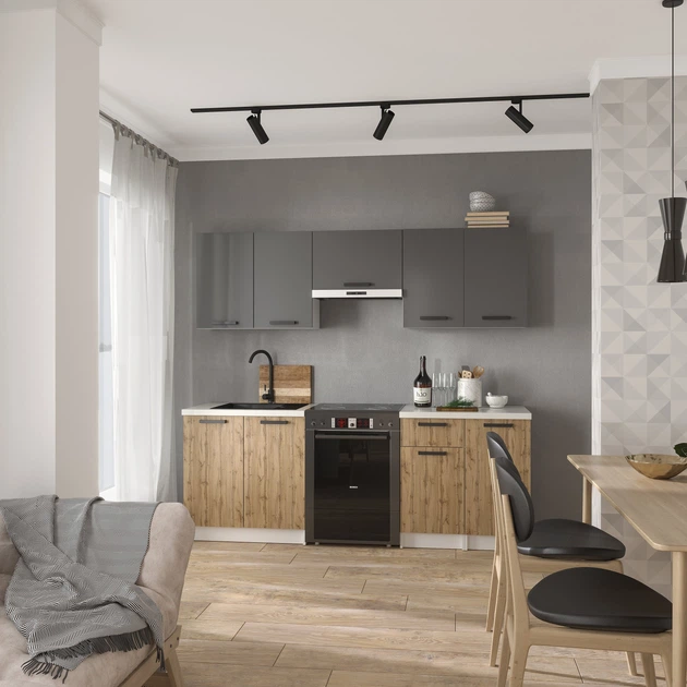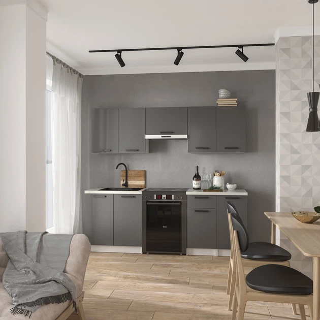 Кухонний набір Оптима К-2 Еверест 2 м, зі стільницею, без мийки, Дуб Крафт Білий, Антрацит, Антрацит