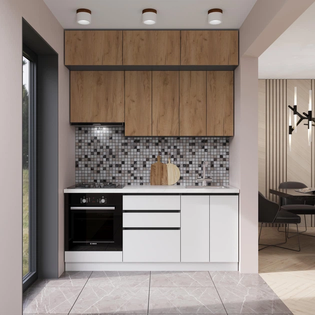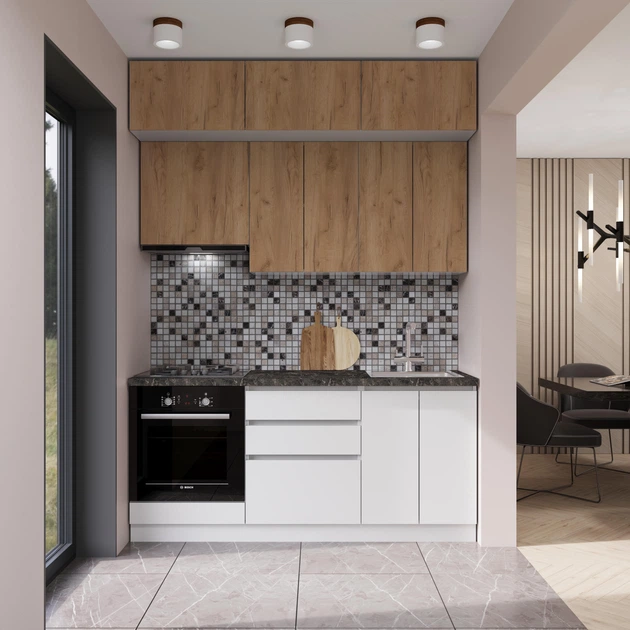 Кухня ДСП 1 Класік SENAM 1,8 м вбудовані плита та витяжка, з антресолями, без ручок Дуб крафт золотий / Білий гладкий Корпус