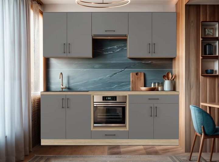 Кухня зі стільницею Tobi Sho OPTIMA-К8 готова 2,2 м Графіт/Графіт, корпус Дуб Сонома