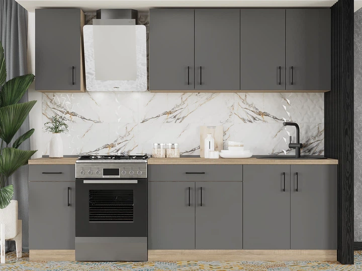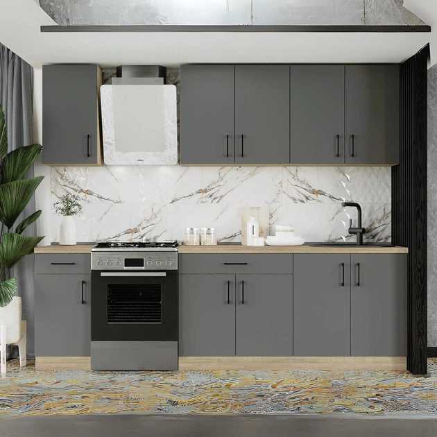 Кухонний набір Оптима К-3 Еверест 2.6 м, зі стільницею, без миття, Графіт, Графіт, Сонома