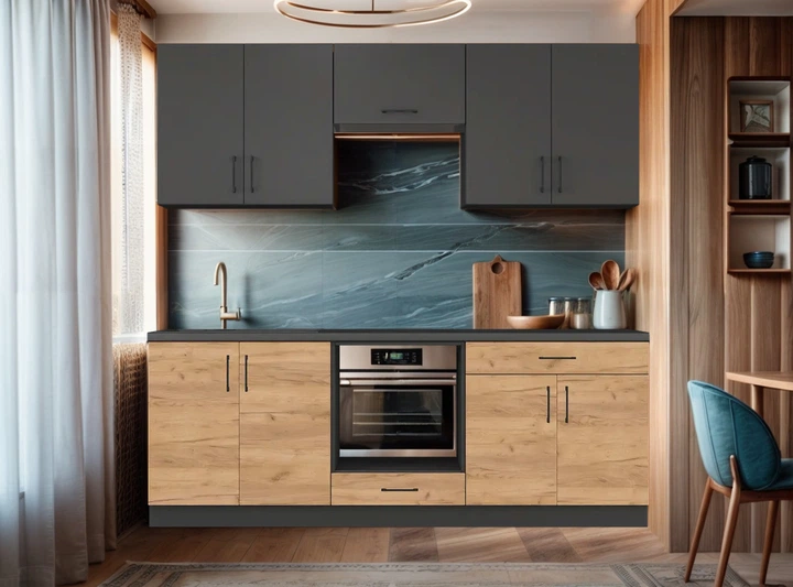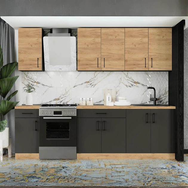 Кухня зі стільницею Tobi Sho OPTIMA-К8 готова 2,2 м Антрацит/Дуб Крафт Золотий, корпус Антрацит
