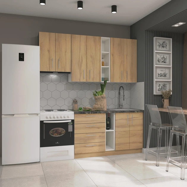 Кухня ДСП 3 Класік SENAM 2,0 м висота Н 900 плита окремо, з ручками Дуб крафт золотий (ДСП3Р20.2)