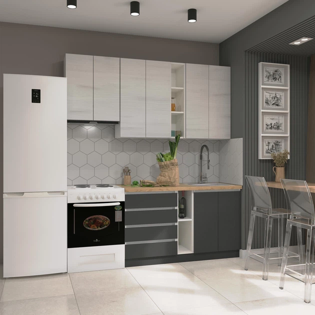 Кухня ДСП 3 Класік SENAM 2,0 м висота Н 900 плита окремо, без ручок Ясен серфсайд чистий / Графіт сірий (ДСП3Б20.2)