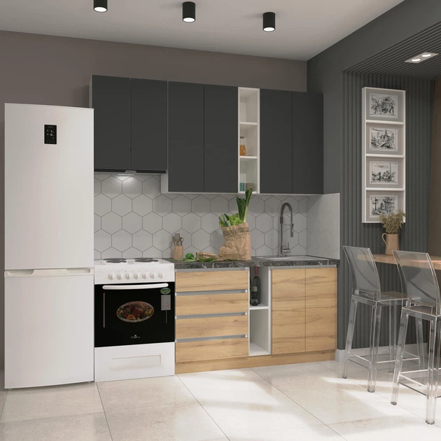 Кухня ДСП 3 Класік SENAM 2,0 м висота Н 900 плита окремо, без ручок Графіт сірий / Дуб крафт золотий (ДСП3Б20.1)