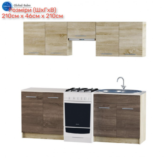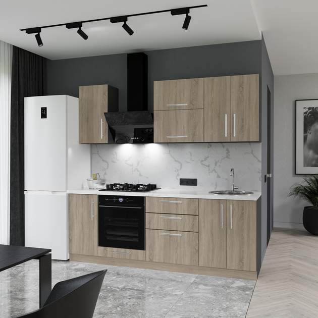 Кухня Еко набір №1, 2.1 м, з врізною мийкою, Дуб Сонома, Дуб Сонома Трюфель