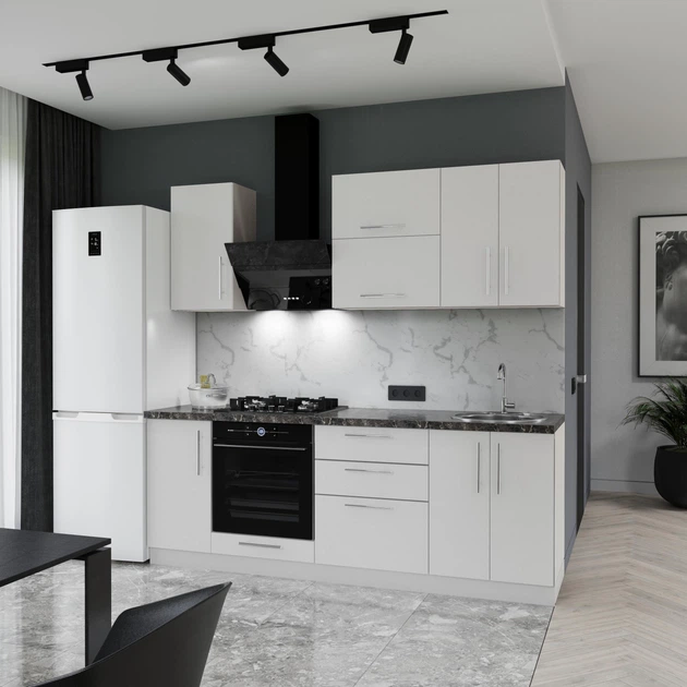 Кухня ДСП 2 Класік SENAM 2,2 м вбудована плита, окрема витяжка, з ручками Білий гладкий (ДСП2Р22.1)