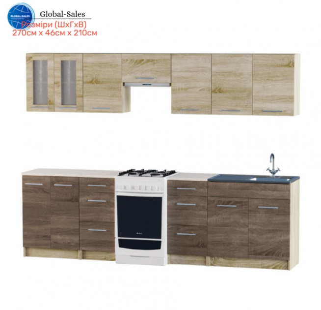 Кухня Еко набір 2.7 м, з накладною мийкою, Дуб Сонома, Дуб Сонома Трюфель