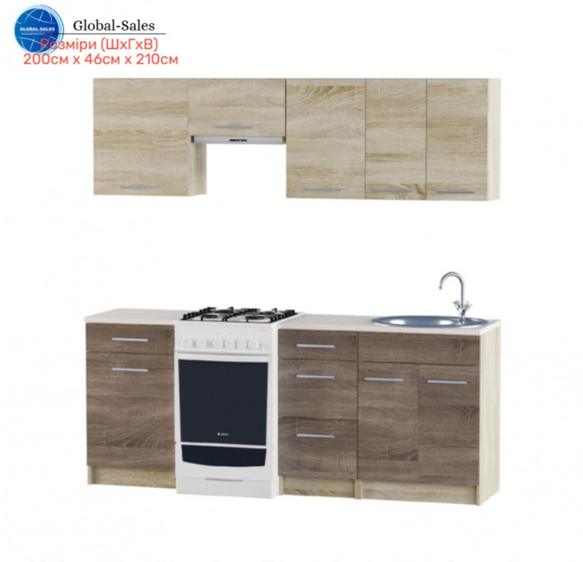 Кухня Еко набір 2.0 м, з врізною мийкою, Дуб Сонома, Дуб Сонома Трюфель