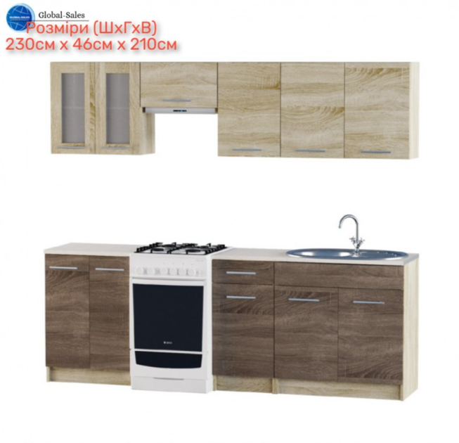 Кухня Еко набір №1, 2.3 м, з врізною мийкою, Дуб Сонома, Дуб Сонома Трюфель