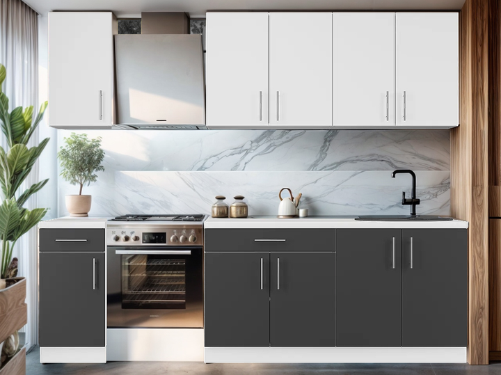 Кухонний набір Оптима К-6 Еверест 2.6 м, без стільниці, без миття, Антрацит, Білий