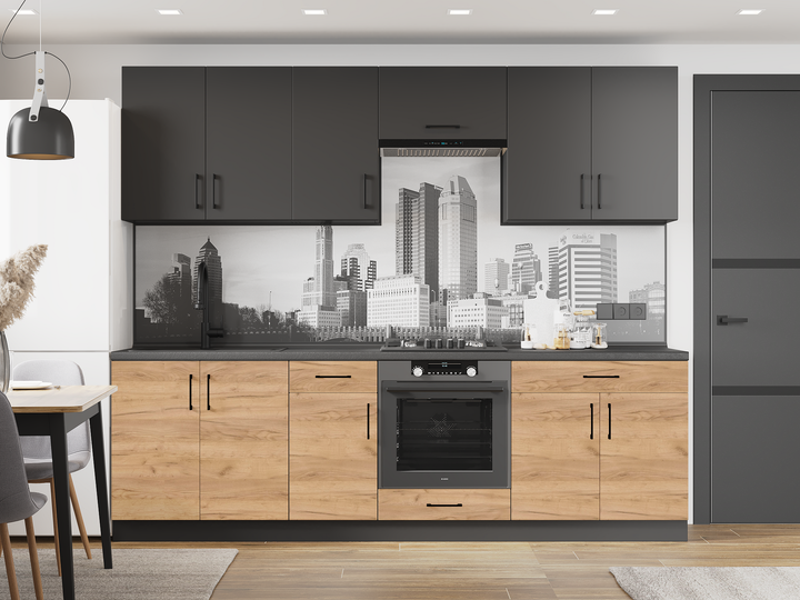 Кухонний набір Оптима К-6 Еверест 2.6 м, без стільниці, без мийки, Антрацит, Дуб Крафт Золотий