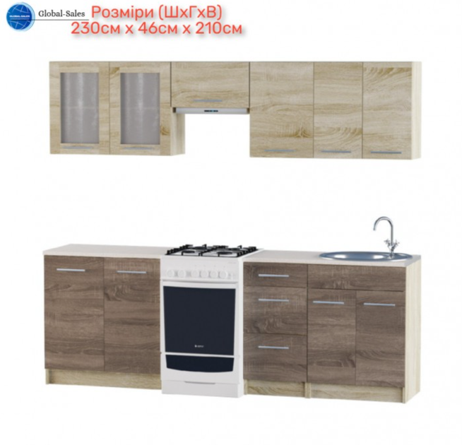 Кухня Еко набір №2, 2.3 м, з врізною мийкою, Дуб Сонома, Дуб Сонома Трюфель