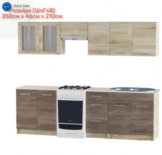 Кухня Еко набір №1, 2.5 м, без мийки, Дуб Сонома, Дуб Сонома Трюфель