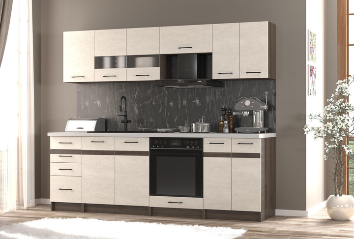 Модульна кухня ЛІВІЯ (4 верхніх + 4 нижніх тумб) 240 см: 260 см Шовковий камінь / Дуб Бароко Рістретто