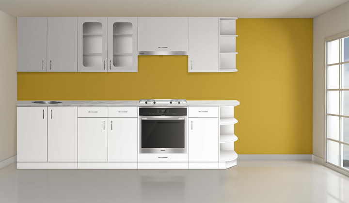 Модульна кухня ГАММА кутова лаковані фасади (6 верхніх + 7 нижніх тумб + кутова нижня тумба) 325 / 345 см х 140 см Білий / Б