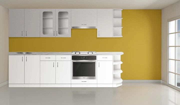 Модульна кухня кутова ГРЕТА (5 верхніх + 6 нижніх тумб + кутова верхня тумба + кутова нижня тумба + шафа-пенал) 370 / 390 х