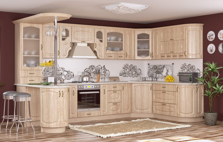 Модульна кухня МЕДІСОН кутова (8 верхніх тумб + кут верхній + 6 нижніх тумб + кут нижній + шафа-пенал) 330 - 335 - 340 - 350
