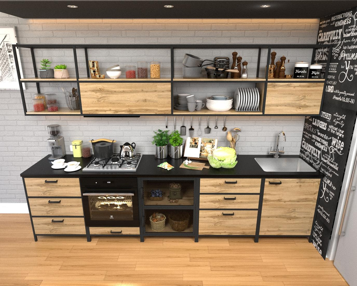 Модульна кухня МЕДІСОН кутова (7 верхніх тумб + кут верхній + 7 нижніх тумб + кут прямий нижній) 365 см / 160 - 165 - 170 -