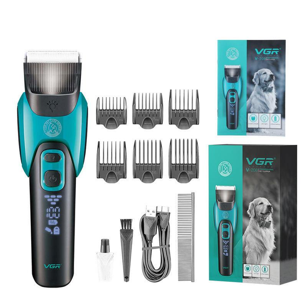 Машинка для стрижки тварин VGR V-208 акумуляторна з LED-дисплеєм для собак та котів з 6 насадками
