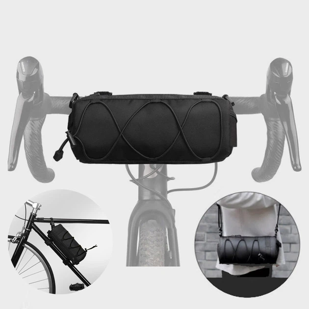 Багатофункціональна велосипедна сумка на кермо, на плече, на раму 2,5 л. Чорна