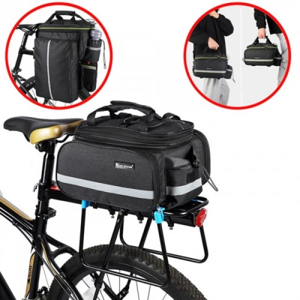 Велосипедна сумка на багажник велоштани з дощовиком Carruzzo L34F чорна з сірим