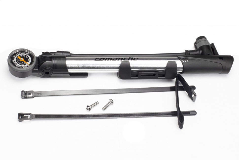 - Дорожній міні-насос - Є манометр - Витяжний шланг - Корпус та шток з алюмінію - Подвійний клапан для системи Presta та Schrader (Twist-lock) - Довжина 9"/23 см - Максимальний тиск 120psi