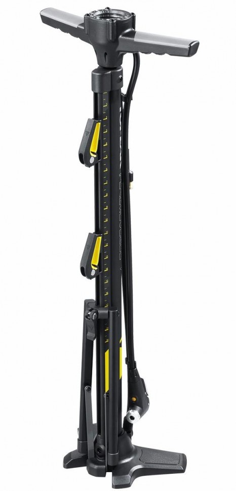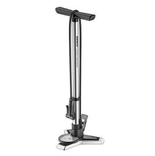 Матеріал: Алюміній / дерево / сталь Манометр: Аналоговий Максимальний тиск: 220 psi (15 bar) Типи ніпелів: Schrader (AV) / Presta (SV) / Dunlop особливості: підлоговий насос в алюмінієвому корпусі розроблений для накачування безкамерних і камерних покришок насос оснащений камерою, в яку вручну закачується повітря під тиском, а потім, натисканням на важіль одним потоком випускається в колесо